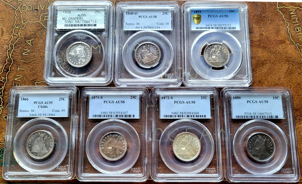 Regardless of the Fortin family visit, I was able to spend a few hours in the GFRC office wrapping up the Liberty Seated quarter and half dollar lots for the August 23 auction. Those lots are now posted with a subset having listed reserves.