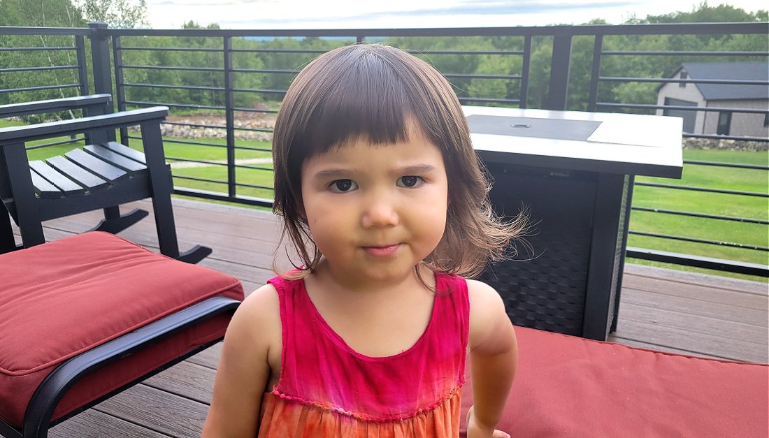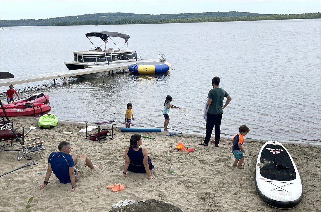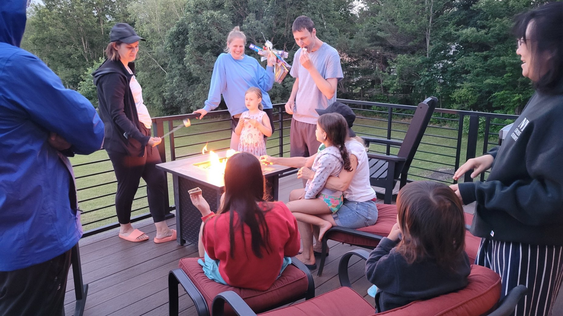 This image sums up the day as the gang is hanging out around our back deck fire pit and cooking marshmallow prior to the coast fireworks display.