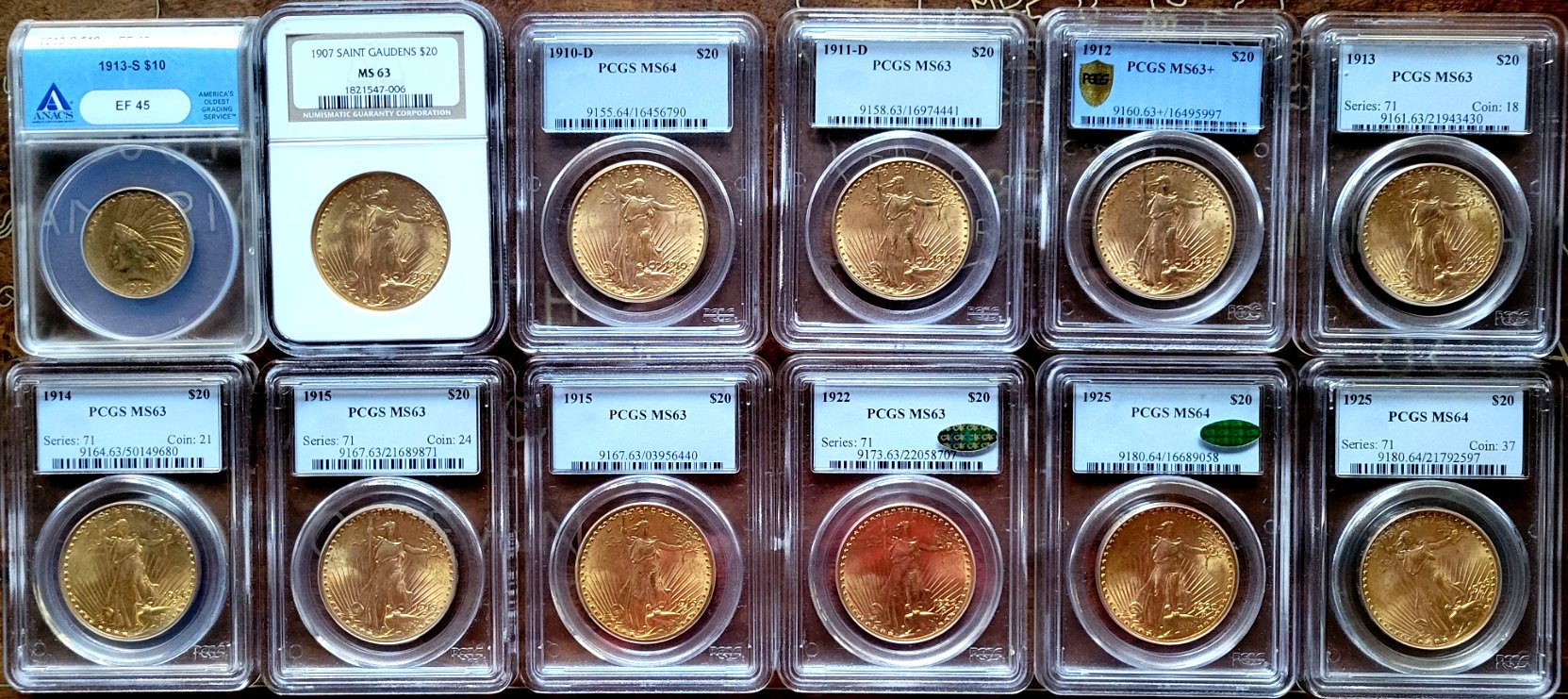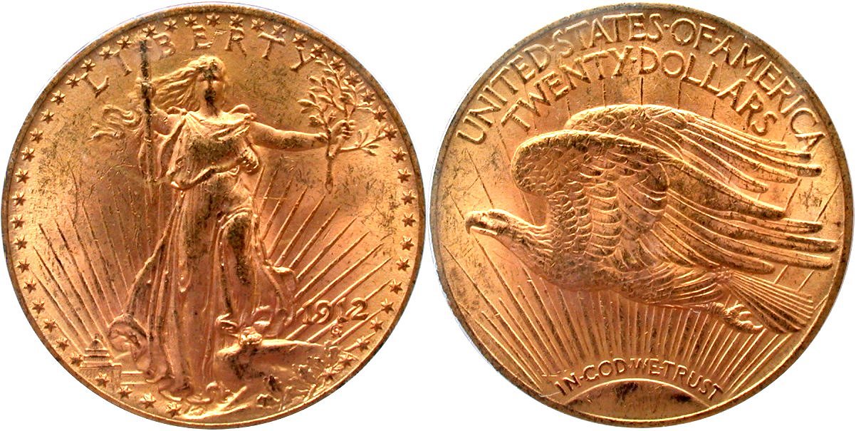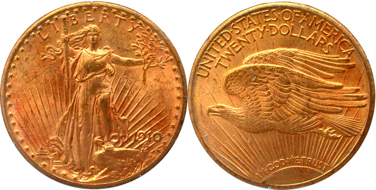 1910-D PCGS MS64 G$20 - $3950                                                1912 PCGS MS63+ G$20 - $4350