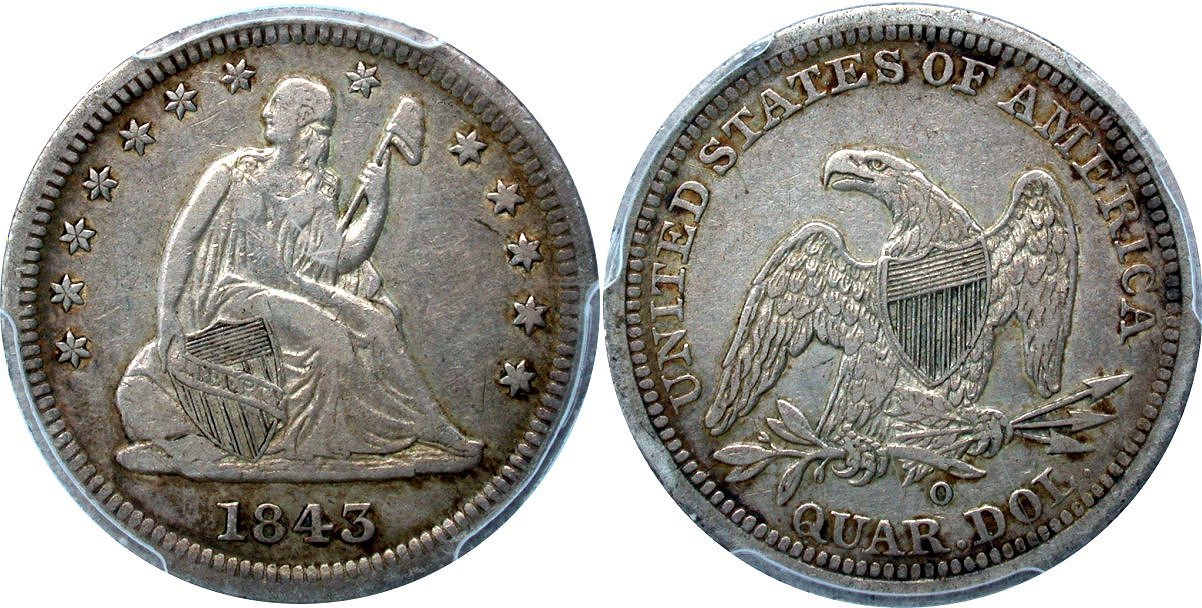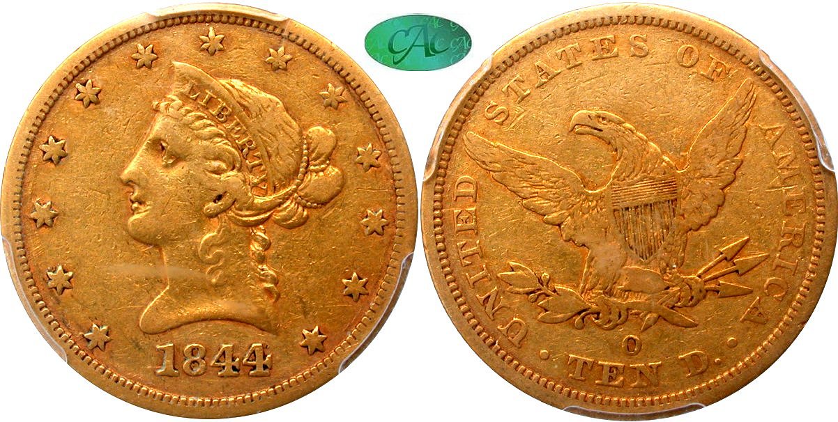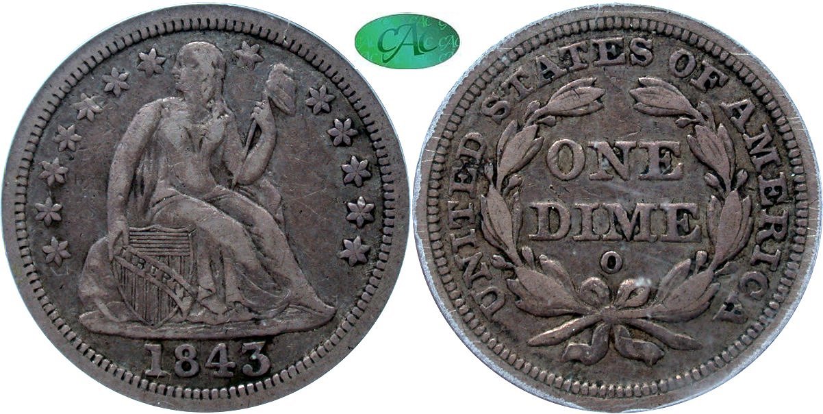 1843-O F-101 PCGS VF30 CAC 10C                                                   1860-O PCGS F12 CAC 10C