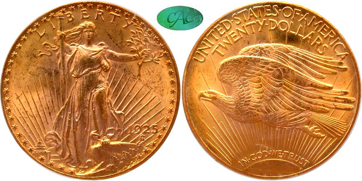1925 PCGS MS64 CAC G$20 - $4000                                           1925 PCGS MS64 G$20 - $3950