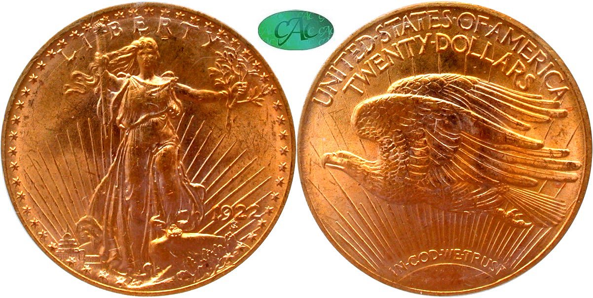 1915 PCGS MS63 G$20 - $4000                                                1922 PCGS MS63 CAC G$20 - $3950