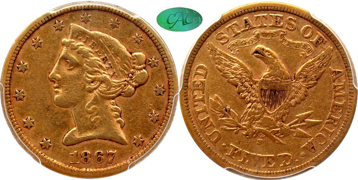 Moving into the Civil War era, there are 1864, 1865, and 1867 Philadelphia issues with the latter warranting close scrutiny. The 1867-S is a difficult date with this VF20 graded specimen being quite desirable. This release also features the challenging 1868-S and 1869-S issues. The second major consignment highlight, after the 1849-O, is a wonderful 1873 No Arrows Closed 3 graded PCGS VF25 with CAC approval. I'm certain that this date will draw substantial attention given its mid-circulated VF25 grade certification along with a CAC green bean. The surfaces are unquestionable original with old dirt in the protected areas.