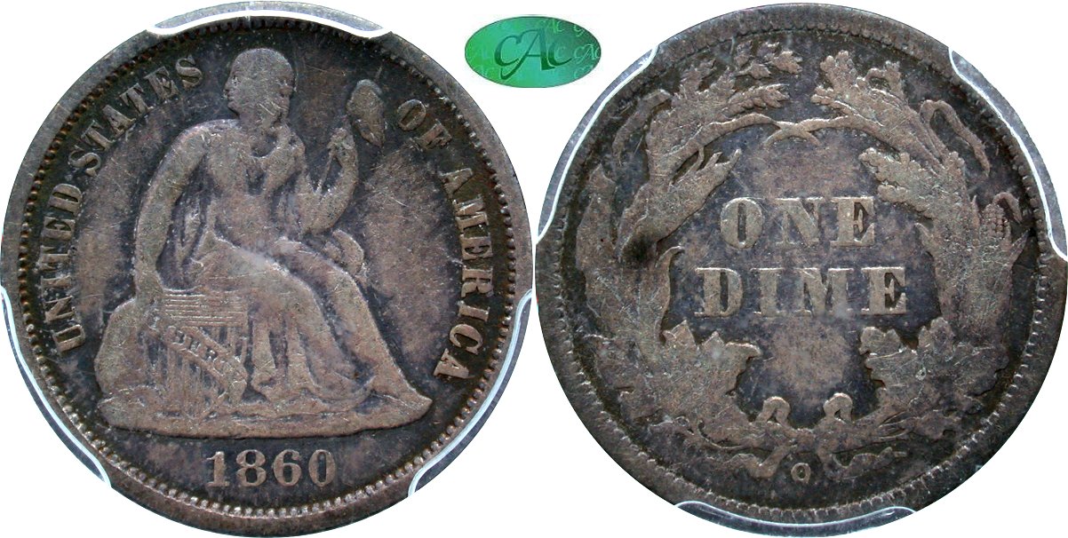 The August 11 auction will be augmented with two incremental Seated dime lots from the Cleveland Collection. These lots arrived on Thursday and were quickly processed with images available for display today. The 1843-O and 1860-O are great in demand dates, especially with CAC approval. Reserves and descriptions will be added to the online auction catalog this weekend.