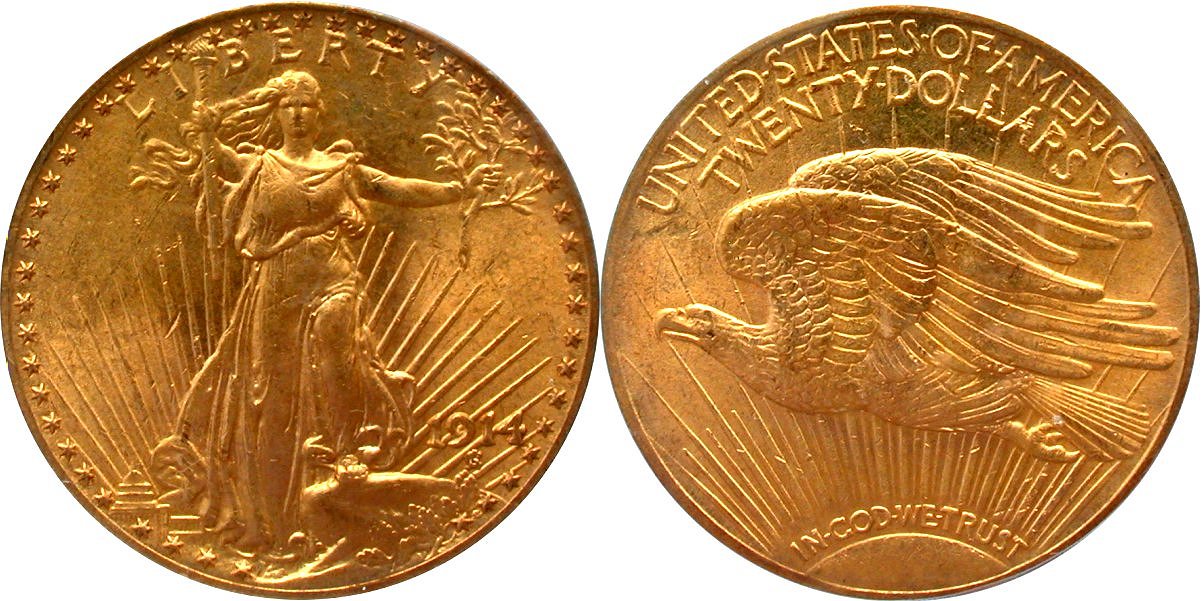 1913 PCGS MS63 G$20 - $4250                                                1914 PCGS MS63 G$20 - $4250