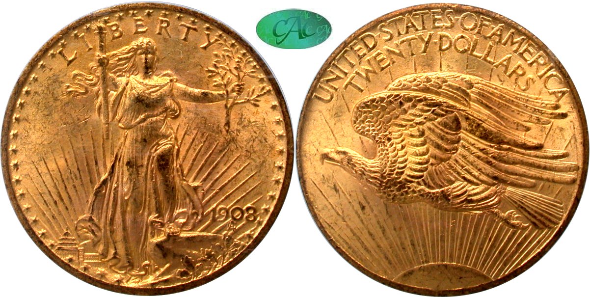 $20 1908 NM PCGS MS63 CAC