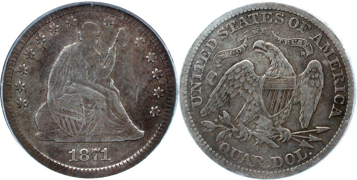 Seated 25C 1871S 1871-S