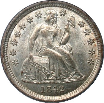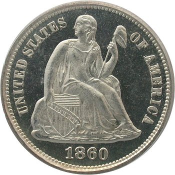 The obverse shows the Christian Gobrecht rendering of the Thomas Sully design, while the reverse has a wreath with ONE DIME, thin long leaves with long stemmed closed berries and the legend UNITED STATES OF AMERICA. All design elements except the date were hubbed into the master die, a technological breakthrough for the time period. First coinage of this group was 30 brilliant proofs struck on June 30, 1837 at the direction of Mint Director, Robert Patterson.