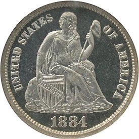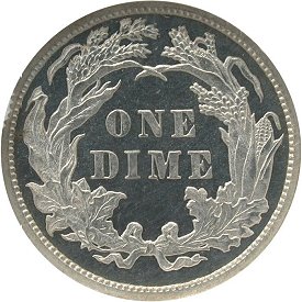 The Liberty Seated Dime proofs are typically collected as two distinct series. The first and more collectable is the series from 1858 through 1891. The second and nearly uncollectable is the series from 1837 through 1857. Proof date position varieties can be found in the 1858 through 1891 series and offer the enthusiast another avenue for an advanced Liberty Seated Dime collection.