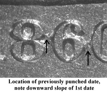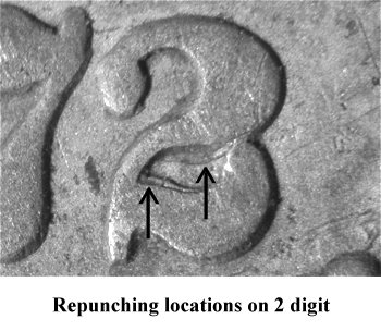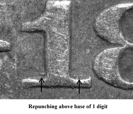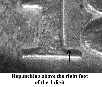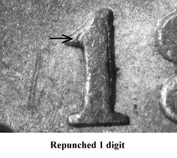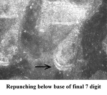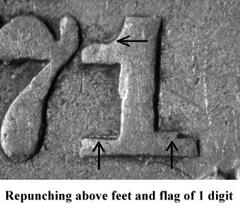 Repunching is visible above the left and right feet of the 1 digit. | |||