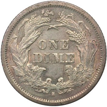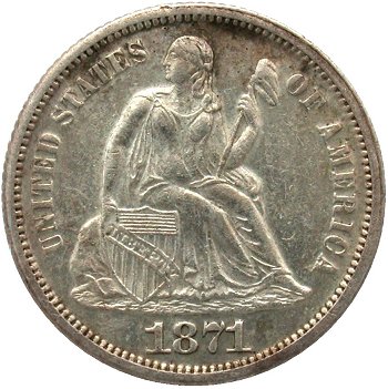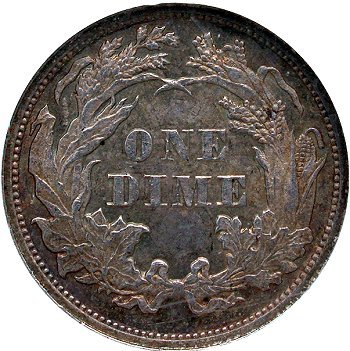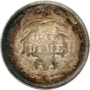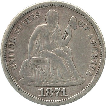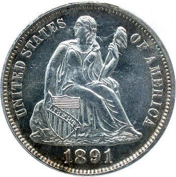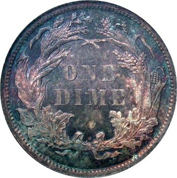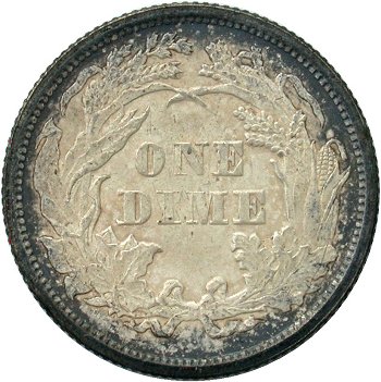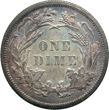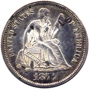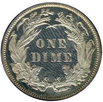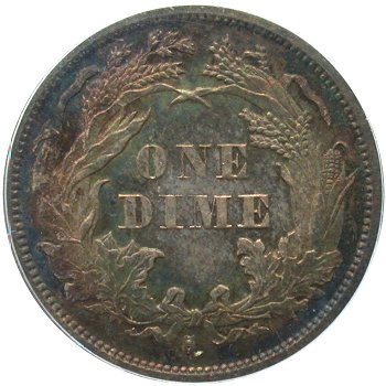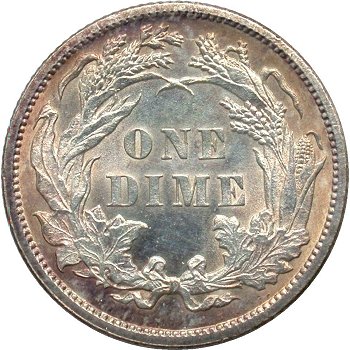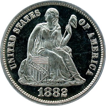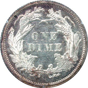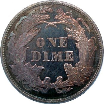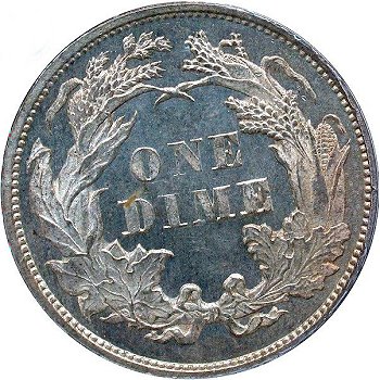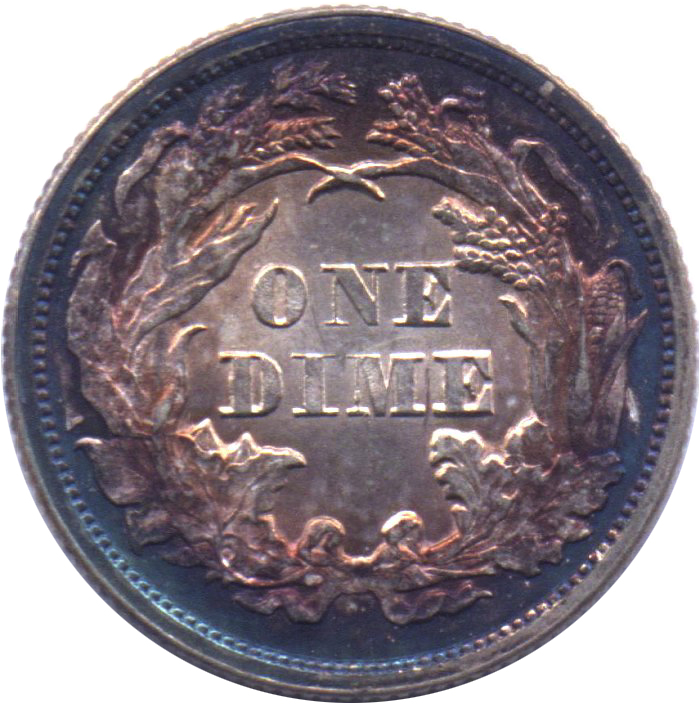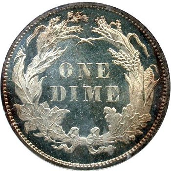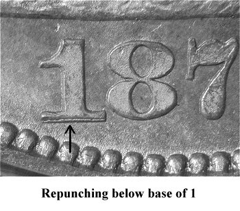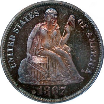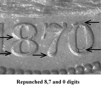 All 1867 proof dimes are found with repunching on the 1, 8 and 7 digits. | |||
