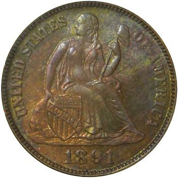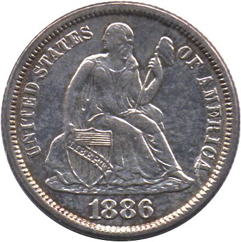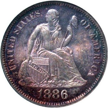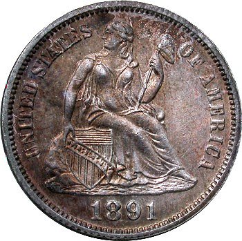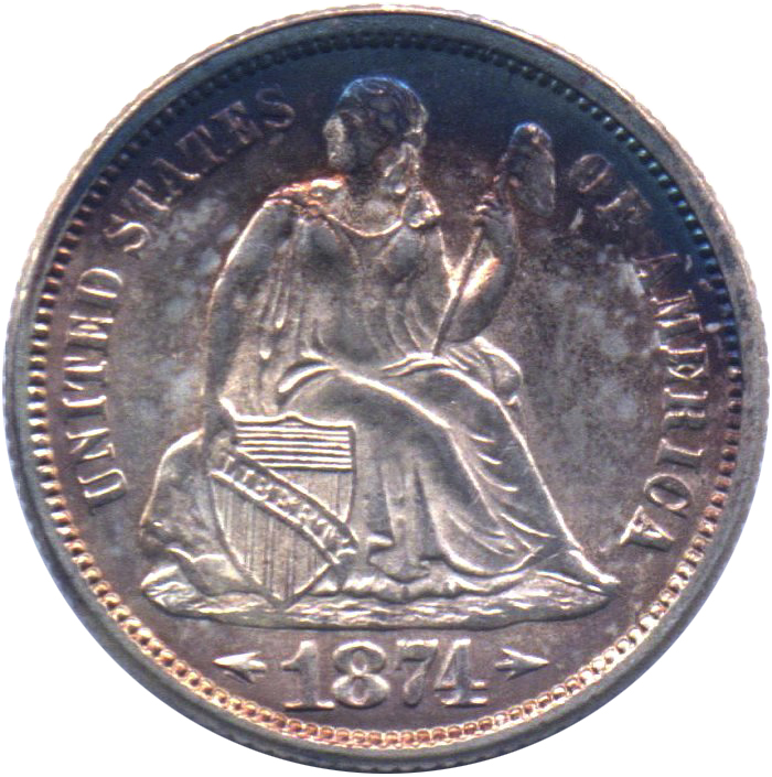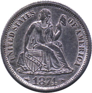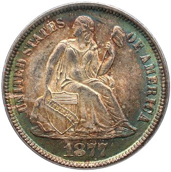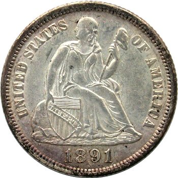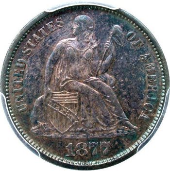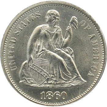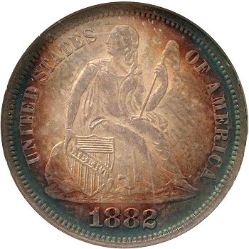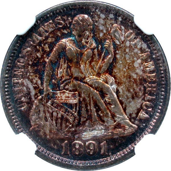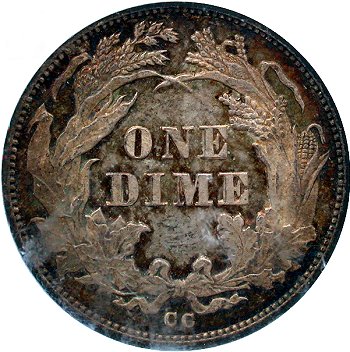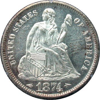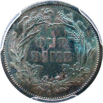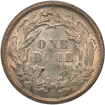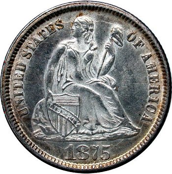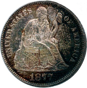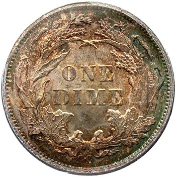 All 1867 proof dimes are found with repunching on the 1, 8 and 7 digits. | |||