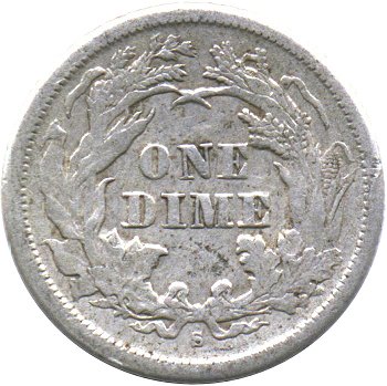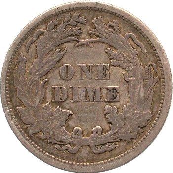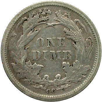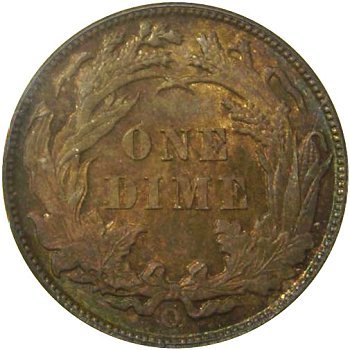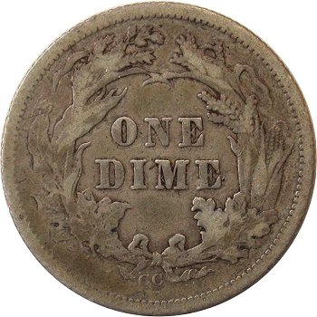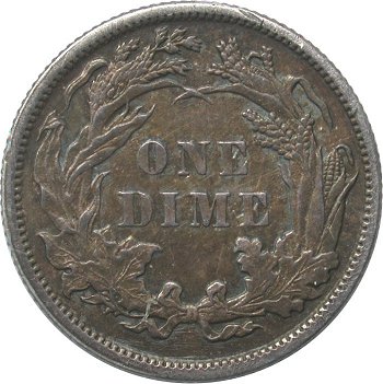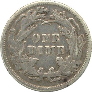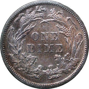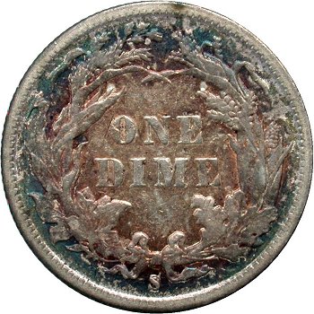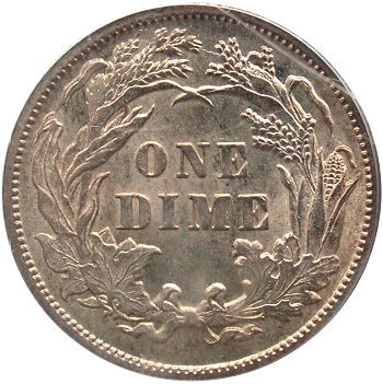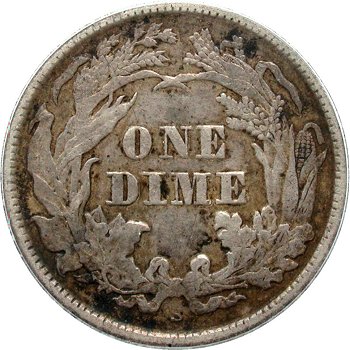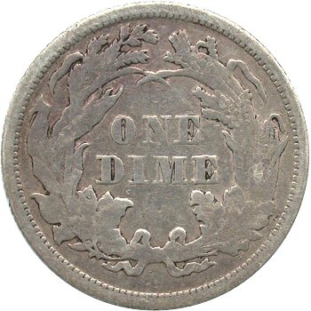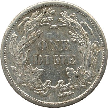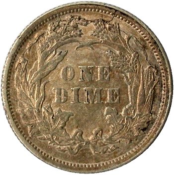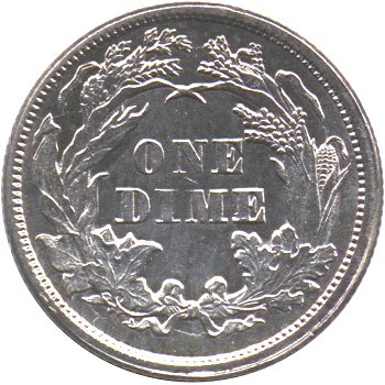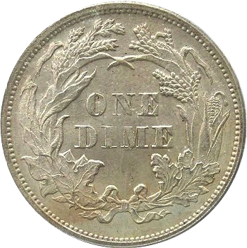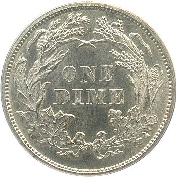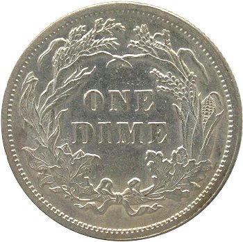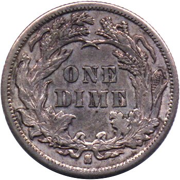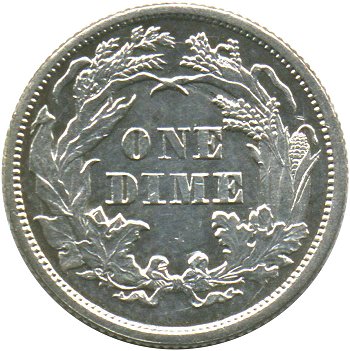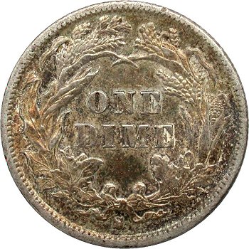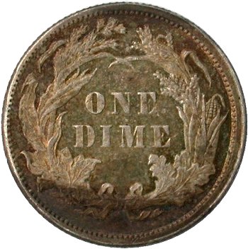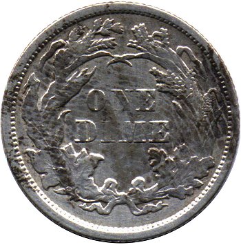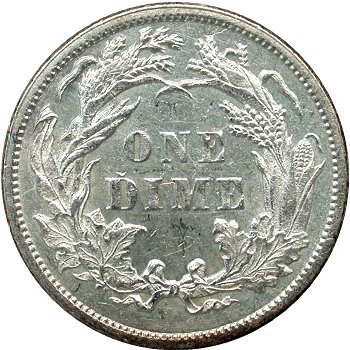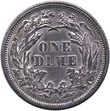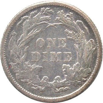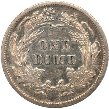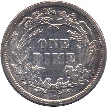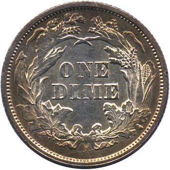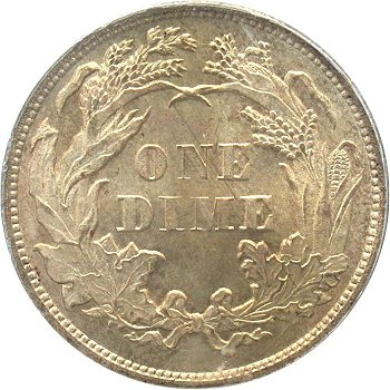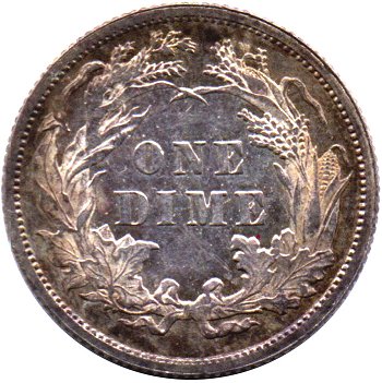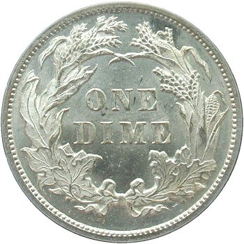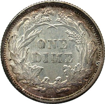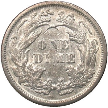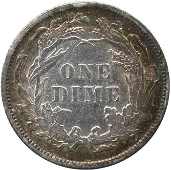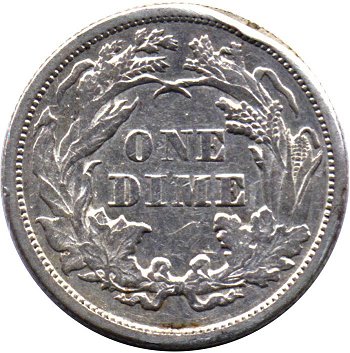 Repunching on the 6 digit is seen below the base. There is also faint repunching below the upper and middle loops. This repunching is not seen on all Type II reverse dimes. | |||