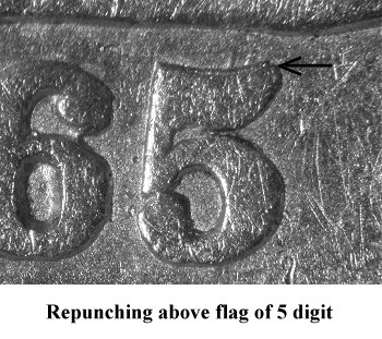 Repunching is seen below the 6 digit and above the left and right base of the 1 digit. | |||