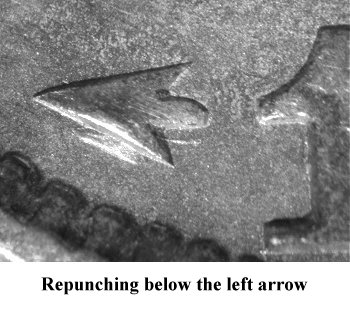 All date digits are repunched. This variety is better known as the "missing" arrows obverse. | |||