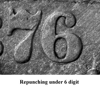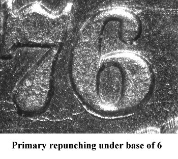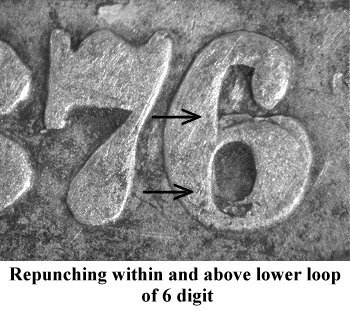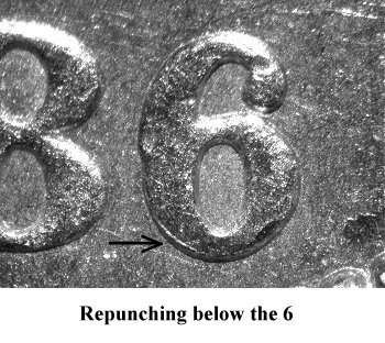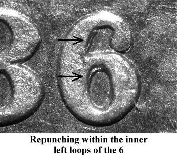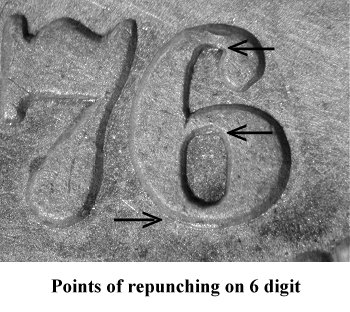 Repunching is seen directly below the left section of the bottom loop of the 6 digit. | |||
