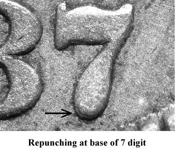 The repunching is very evident under both the 7 and 6 digits. | |||