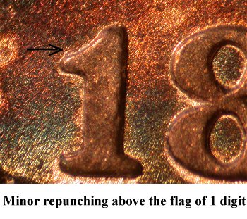 Proof Strikes; The 1 digit shows repunching above the upright and below the base. On the 8 digit, repunching can be seen in the bottom of the upper and lower loops. | |