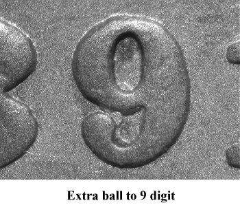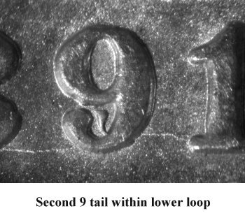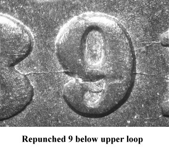 Repunching is seen within the tail of the 9 digit. This repunching is obvious. | |||