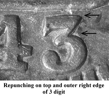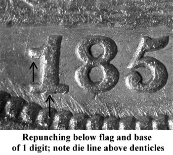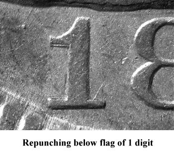 During early die state, repunching is seen under the base of the 1 digit with traces of repunching under the flag. | ||||
