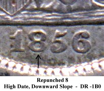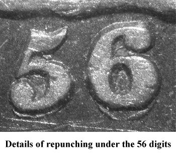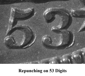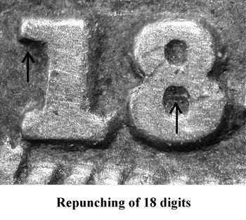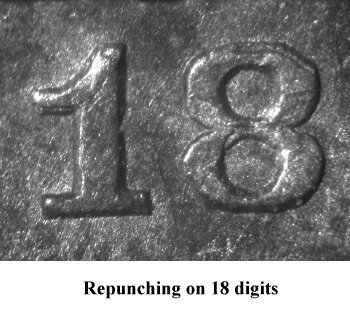 All four date digits are strongly repunched. This variety has been listed in major numismatic pricing guide for years. | |||