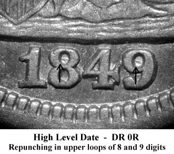 Repunching is clearly visible in the upper loops of the 8 and 9 digits. Previous listed as 1849/8 overdate. | |||