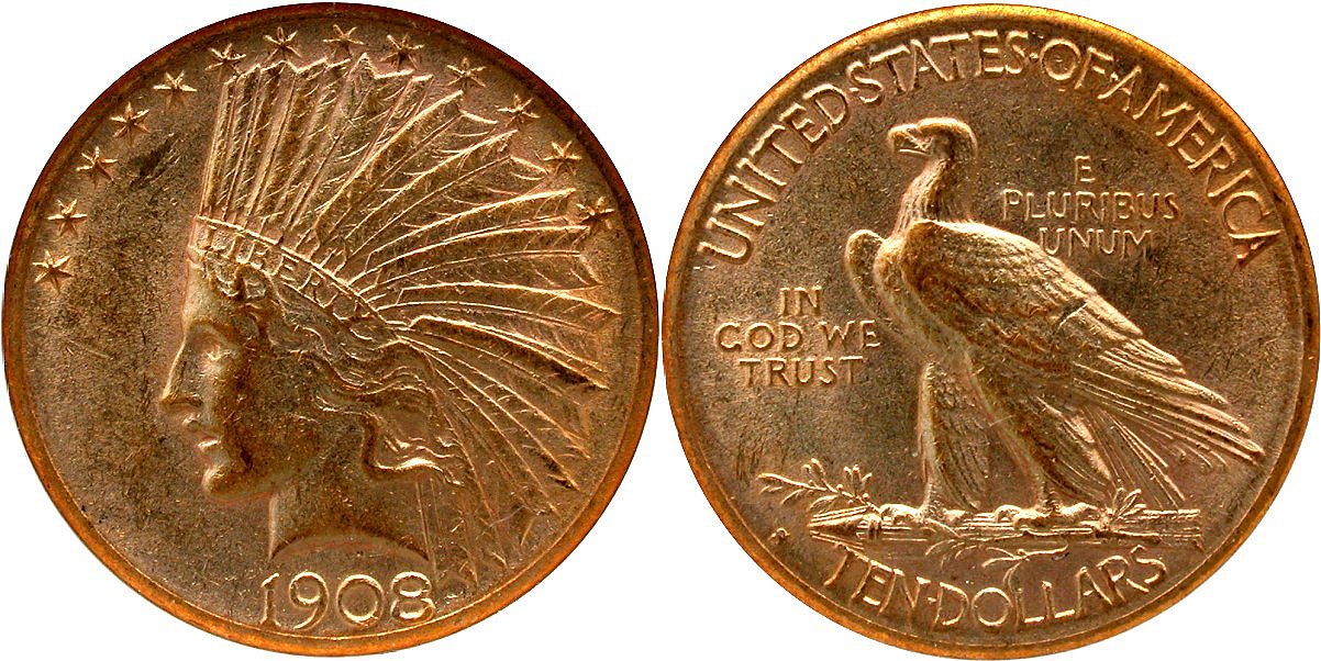 Gold G$10 1908S