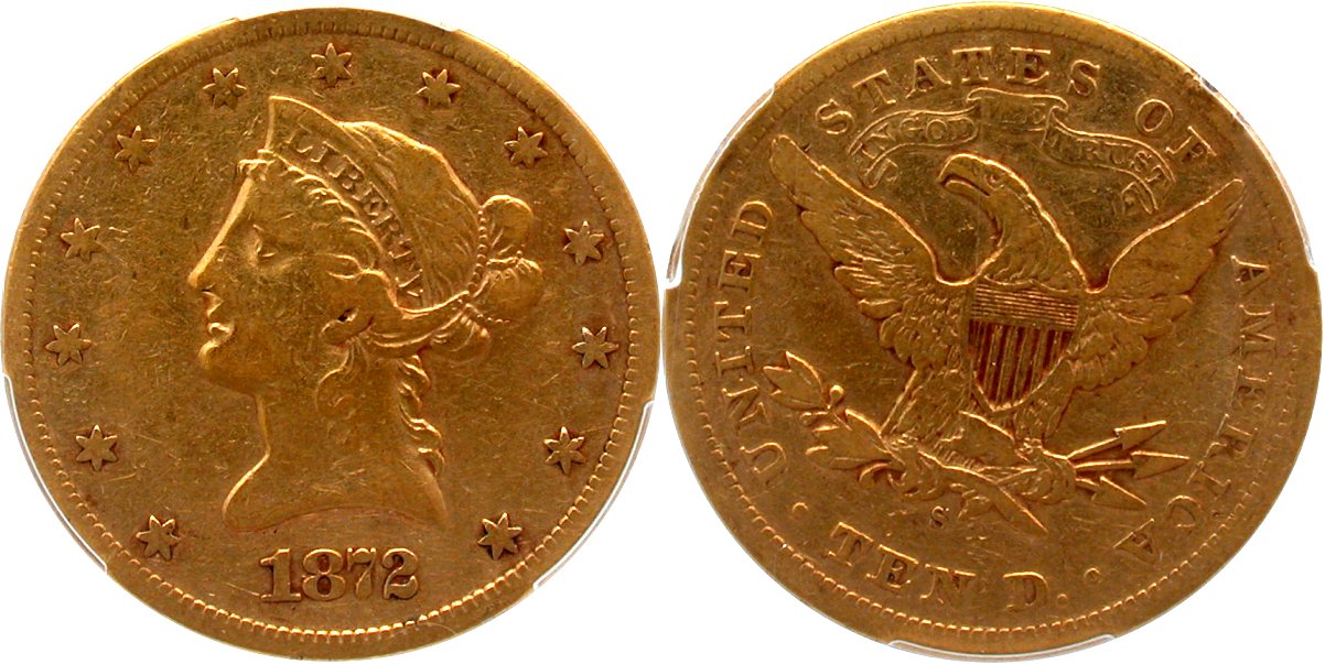 Gold G$10 1872S