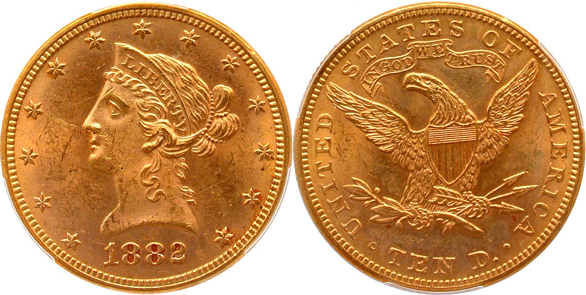 Gold G$10 1882S