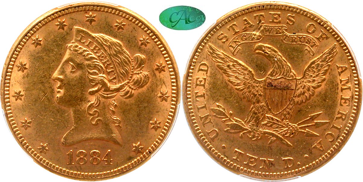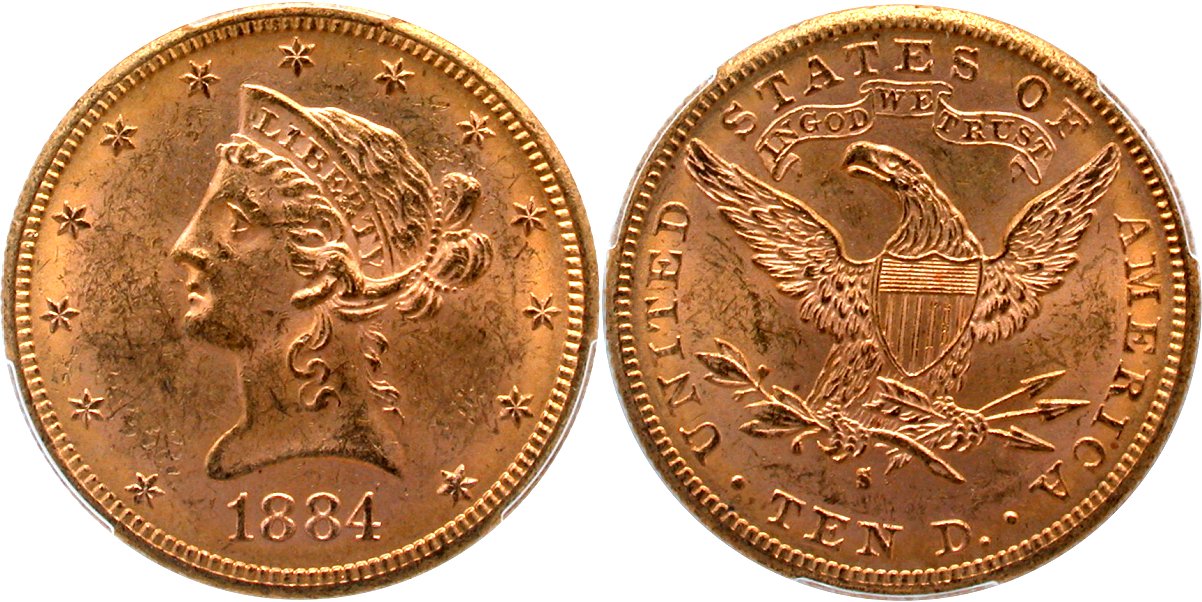 Gold G$10 1884S