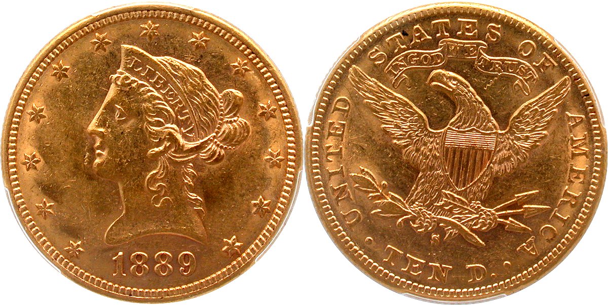 Gold G$10 1889S