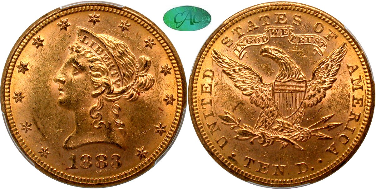 Gold G$10 1883S