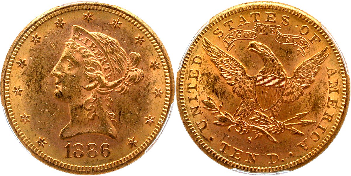 Gold G$10 1886S