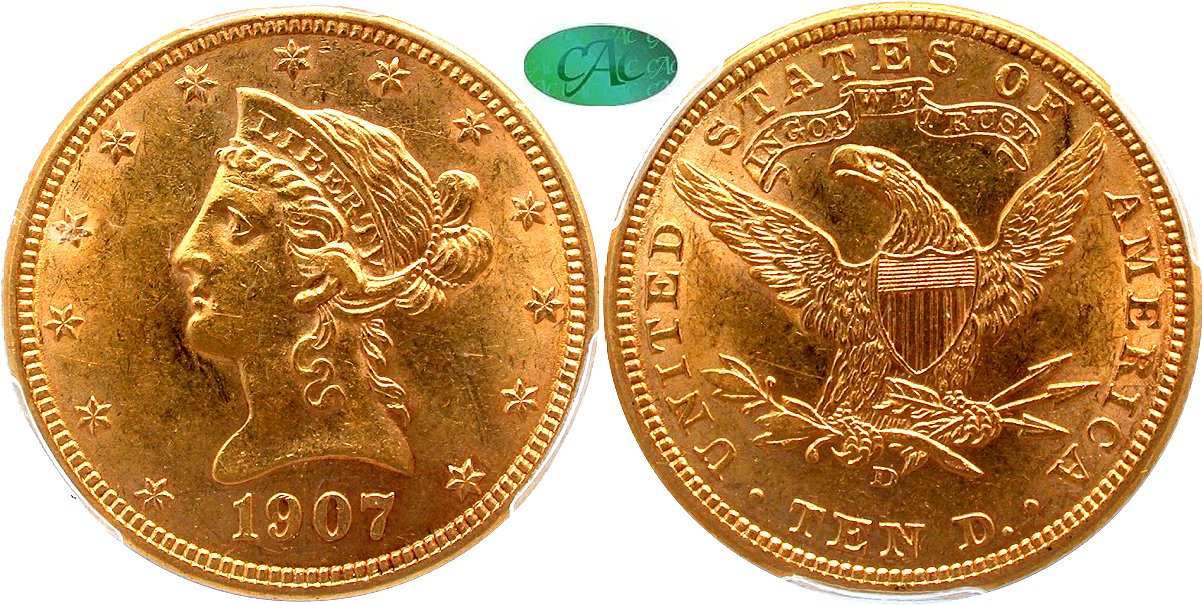 Gold G$10 1907D