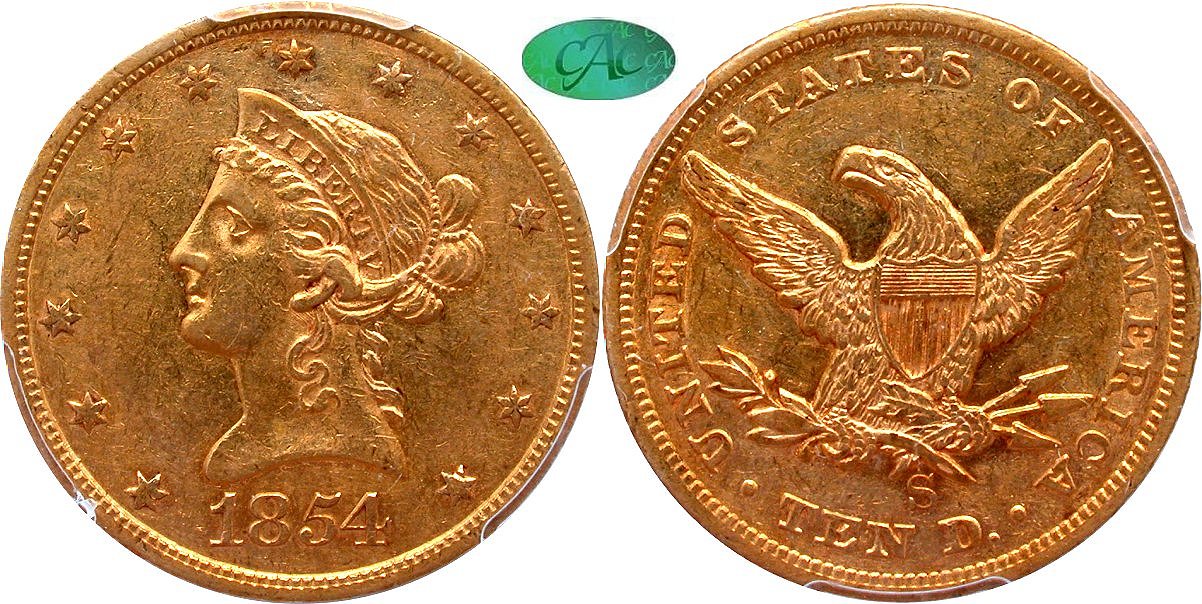 Gold G$10 1854S