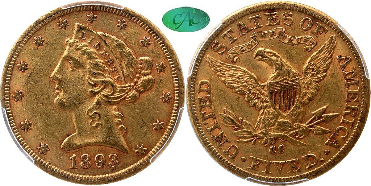Gold G$5 1893CC