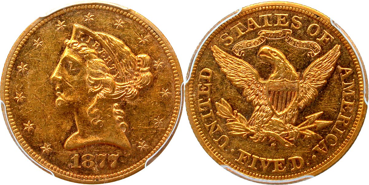 Gold G$5 1877S