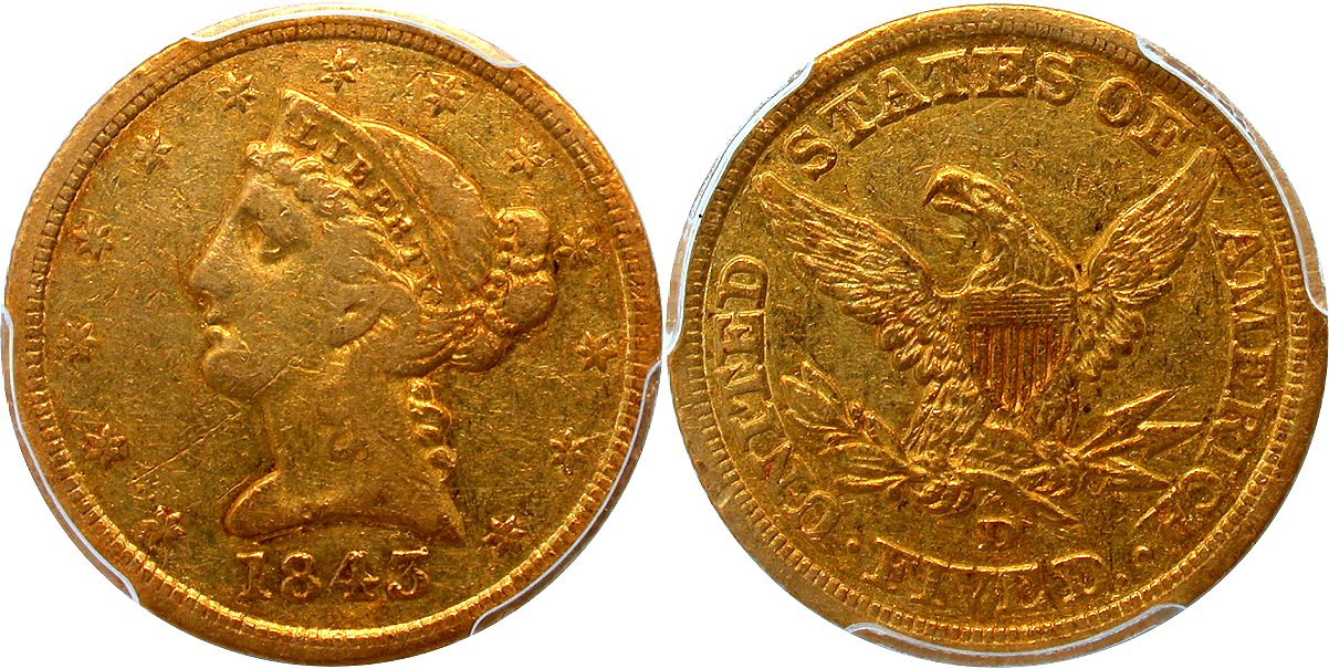 Gold G$5 1843D