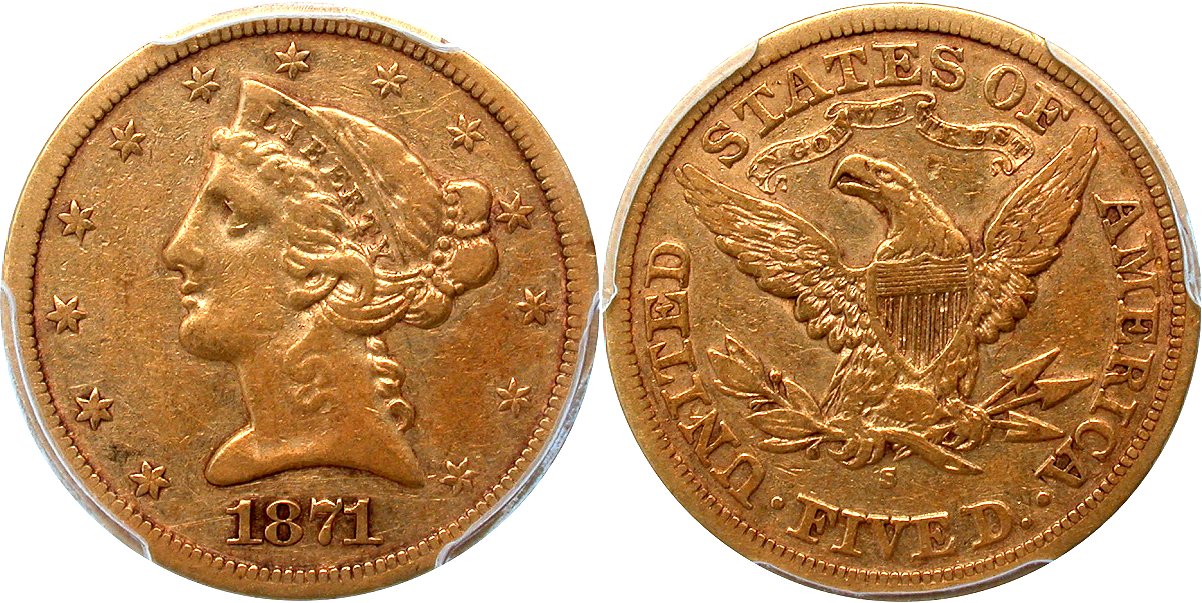 Gold G$5 1871S