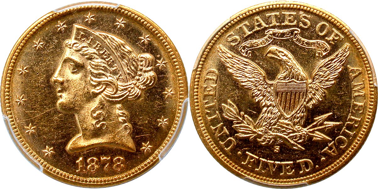 Gold G$5 1878S