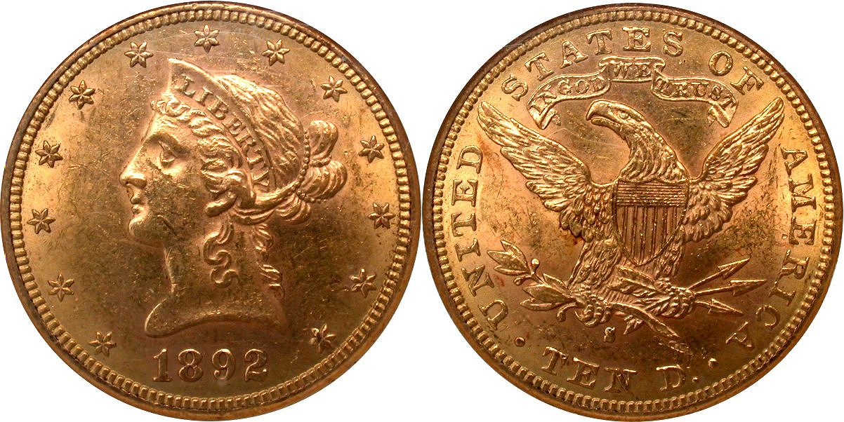 Gold G$10 1892S