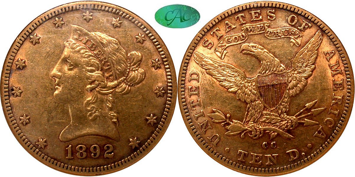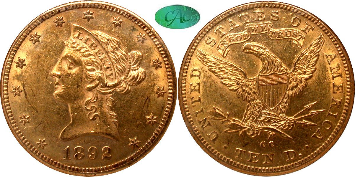 Gold G$10 1892CC
