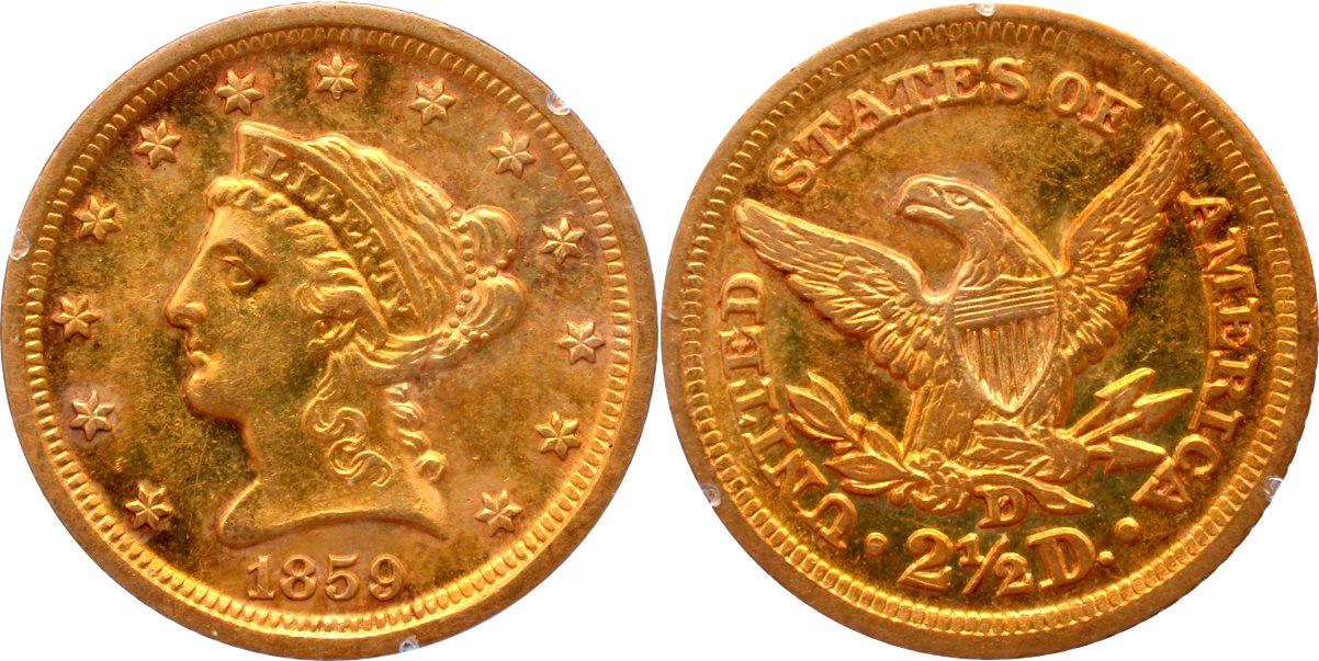 Gold G$2.5 1859D