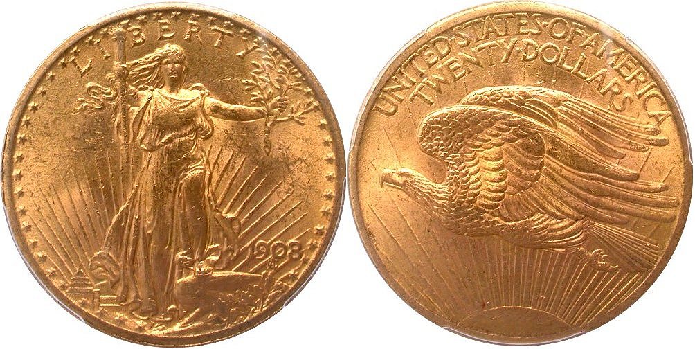 Gold G$20 1908D