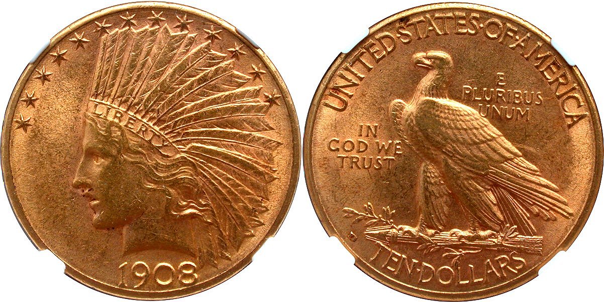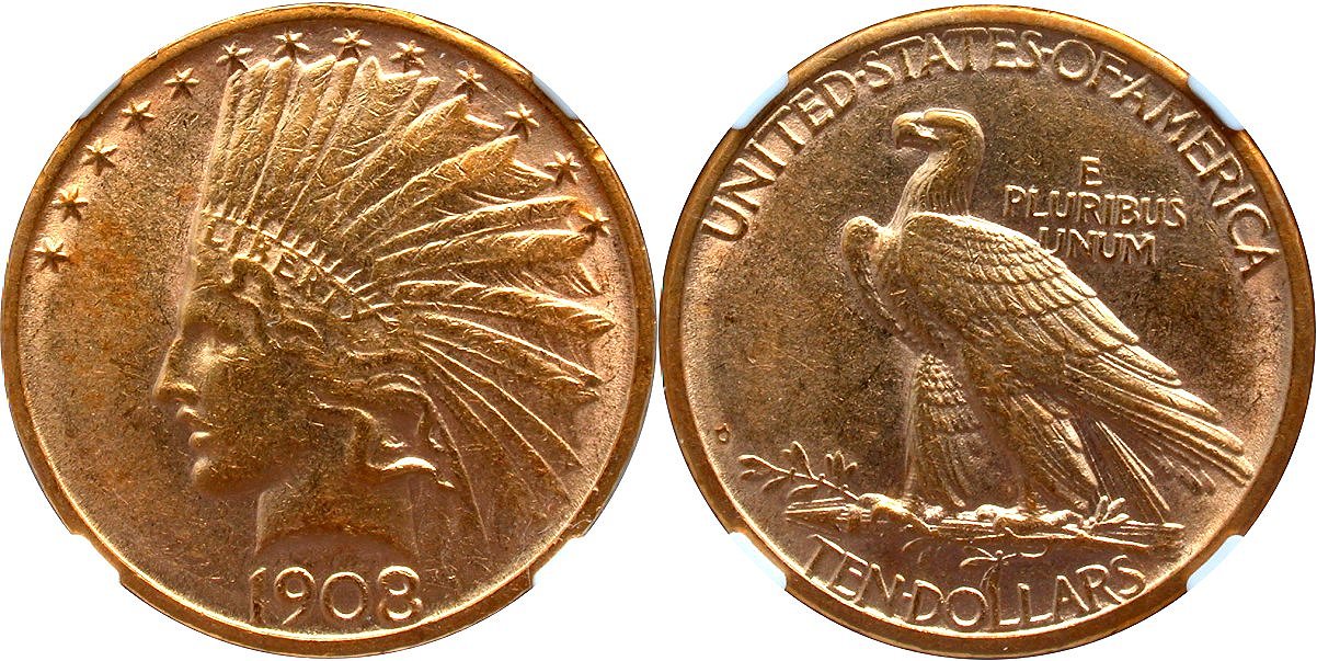 Gold G$10 1908D