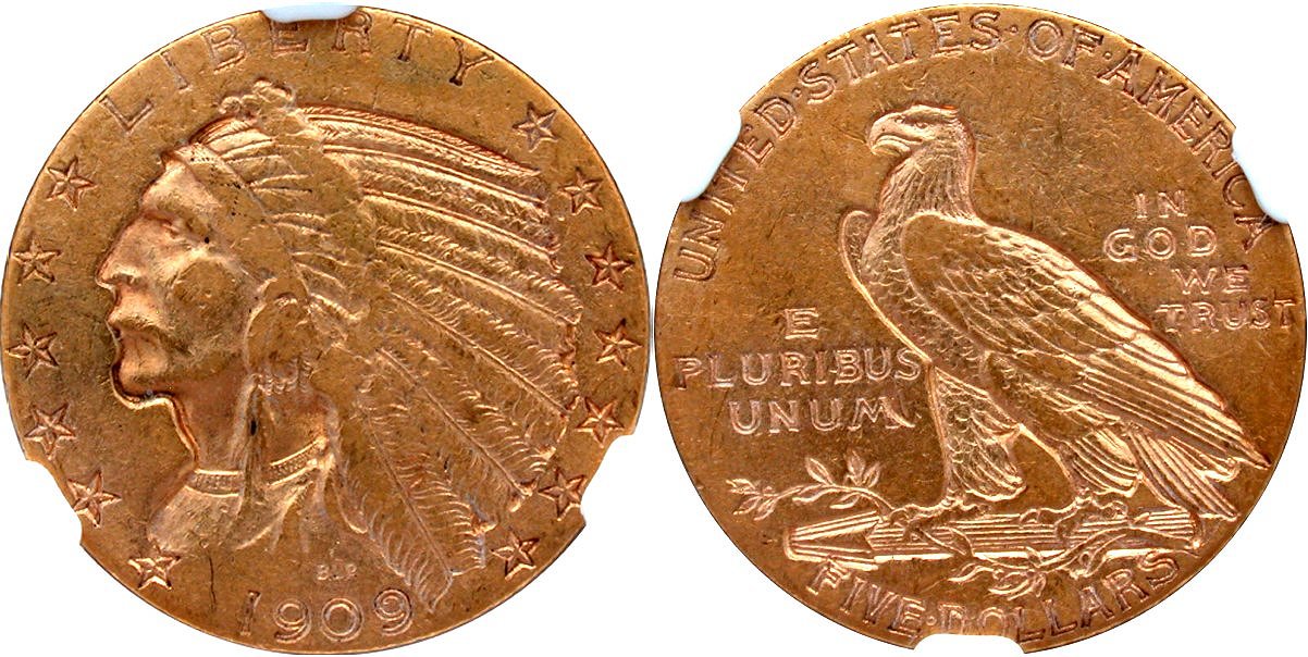 Gold G$5 1909S