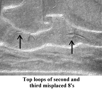 Comments: The top loop of an extra 8 or 9 digit is seen immediately to the right of the scroll end. This variety was first published by Bill Fivaz and is also included in the Top 100 and Ultimate varieties sets. Relatively scarce but more so in the past few years as examples are cherrypicked and removed from the market.