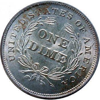 Heavy vertical die crack on reverse, die crack starts at STATE(E) then down through O(N)E and D(I)ME into left bow knot. Die crack must be complete from top to bottom rims for variety. |