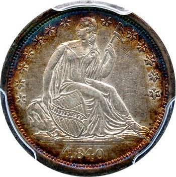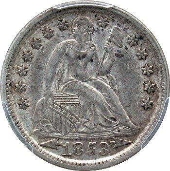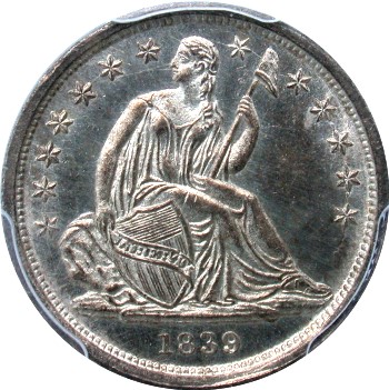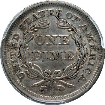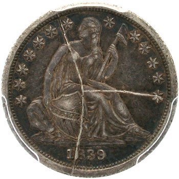 The collecting of Seated coinage with shattered dies and die cuds is quite popular among Liberty Seated Collector Club members with certain individuals being quite passionate on the matter. E-Gobrecht and Gobrecht Journal advertisements for buying Seated coins with major die cracks are prevalent. Therefore, it was obvious that the first Seated Dime specialty set should focus on the major shattered dies in that series. Seated dimes shattered dies can be spectacular in appearance regardless of whether in circulated or in mint state condition. The 1839 Pie Shaped shattered obverse is by far the key date to the Top 100 Variety set and now the Top 25 Shattered die set. The boldly cracked reverse of 1839-O designated F-104 and appropriately called “The Cobweb” shattered reverse has been popular for years among LSCC members. The 1854-O shattered obverse with its massive raised die crack through the date and arrows is another highly desirable prize for variety specialists. Some of you may question the difference between a cracked die and a shattered die? To be included in the “shattered dies set”, each cracked die variety must be significant and in a late die state. The late die states should constitute and justify the labeling as a shattered die.