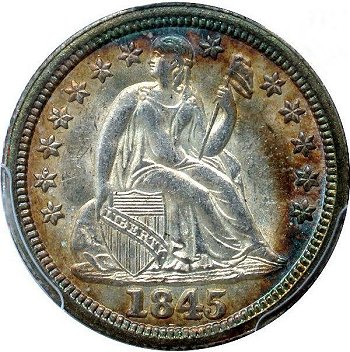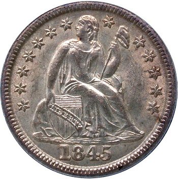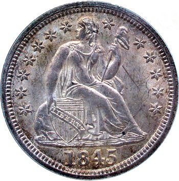 Obverse: Medium Date, Slight Upward Slope, Die Scratches Through Shield and Gown